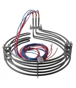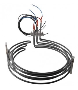Puissance totale 8000 W (3 circuits inox ø 8,5 mm 3 x 2666 W). Tension 230 / 400 V. ø extérieur 375 mm ø intérieur 315 mm. Bride de fixation 90 x 45 mm munie de 4 tiges filetées M6. 6 connexions filetées M4. Résistance adaptable su