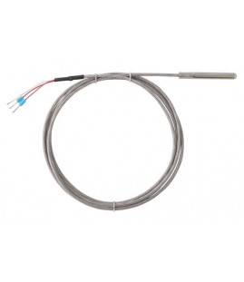 Température d'utilisation de 50 à+ 400° C. Câble gainé tresse inox 3mètres Bulbe à 6 mm - Longueur 100 mm Ressort de coubure. Une sonde PT100 3 fils peut se monter aussi à la palce d'une 2 fils