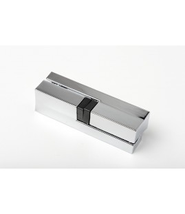 Coussinet nylon. Finition poli chromé. Hauteur 120 mm. A partir de 34 mm d'épaisseur de porte. Interchangeable gauche ou droite.