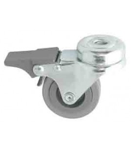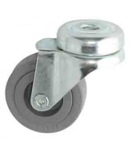 Chape à œil à 10 mm. Roue à bandage caoutchouc gris non tâchant. Charge dynamique : 80 Kg