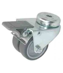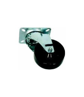 Pivotement sur 2 couronnes de billes. Roue montée sur axe revêtu de téflon. Charge dynamique : 125 Kg