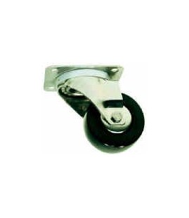 Platine pivotant sur un double chemin de billes traité. Roue en caoutchouc semi-élastique coloris noir. Roulettes supportant de moins fortes charges que les roulettes polypropylène mais beaucoup plus silencieuses. Charge dynamique : 80