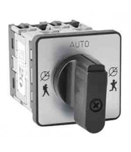 Commutateur BACO PR17/9552 (25A). Racordement par bornier à vis. Boîtier 48x50x69 mm. Livré complet avec manette et plastron gravé O, PV, GV. modèle tri - 2 vitesses avec branchement en couplage Dahlander