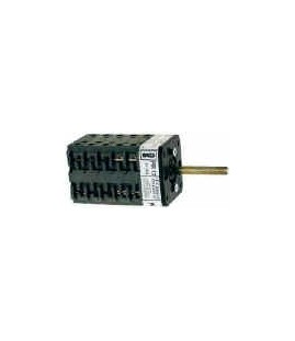 Commutateur BACO PR17/40792E AL . 2 vitesses avec inversion du sens de marche Type PR17 (25A). Schéma 40792. Raccordement par bornier à vis. Boîtier 48x50x81 mm. Axe carré de 5 mm. Longueur 45 mm. Manette non comprise.