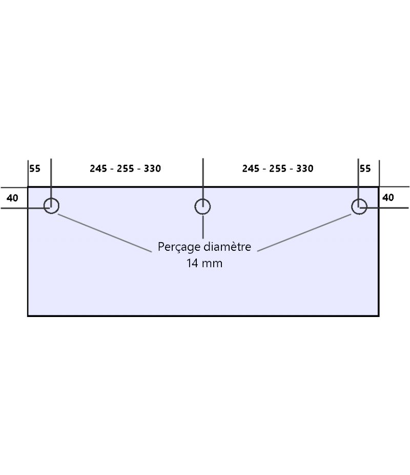 Selon les dimensions de la vitre, la distance entre les trous est de 330 mm, 255 mm ou 245mm