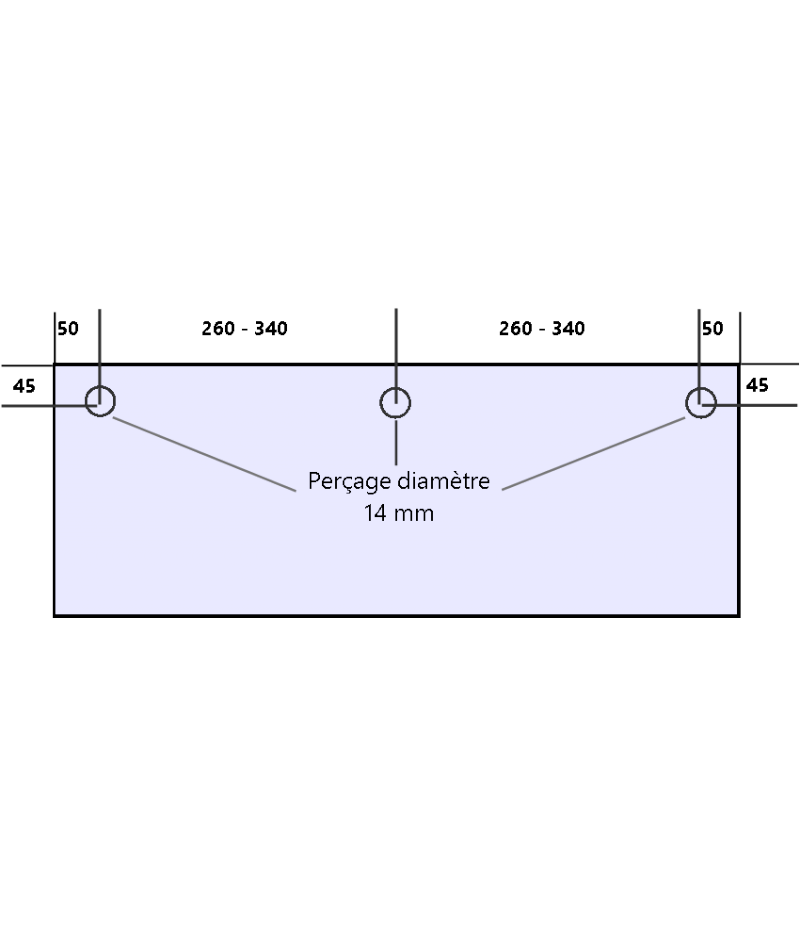 - entraxe bord vitre-trou : 50 mm avc entraxe haut vitre-trou: 20 mm ou 45 mm
