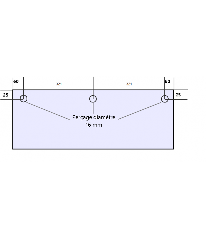 entraxe bord vitre-trou : 60 mm ou 65 mm (selon les dimensions de la vitre)