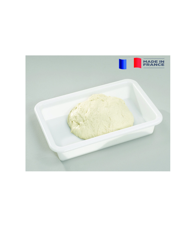 Lot de bac à pâte 14.3L, polypropylène, dimensions L 600mm x lg 400mm x H 95mm, poids 800 grammes, fabrication française.