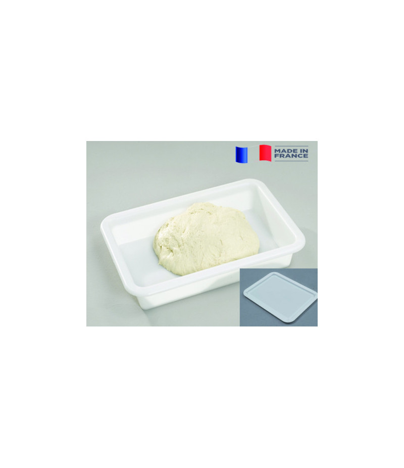 Les couvercles sont utilisables en 2 positions. Couvercle en position recto : fermeture pour superposition des bacs avec circulation d'air ou de gaz de fermentation, permettant la levée des pâtons. Couvercle en position verso : fermeture pour superposition des bacs sans aération, dont l'étanchéité garantie une durée de conservation plus longue.
