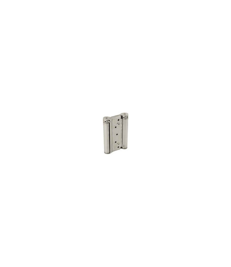 Paumelle - charnière à ressorts à double action n°2. Réalisée en inox 18/10 y compris les ressorts. Tension du ressort réglable. Pour épaisseur de porte de 25 à 35mm. Hauteur de la paumelle 125mm, poids 850g