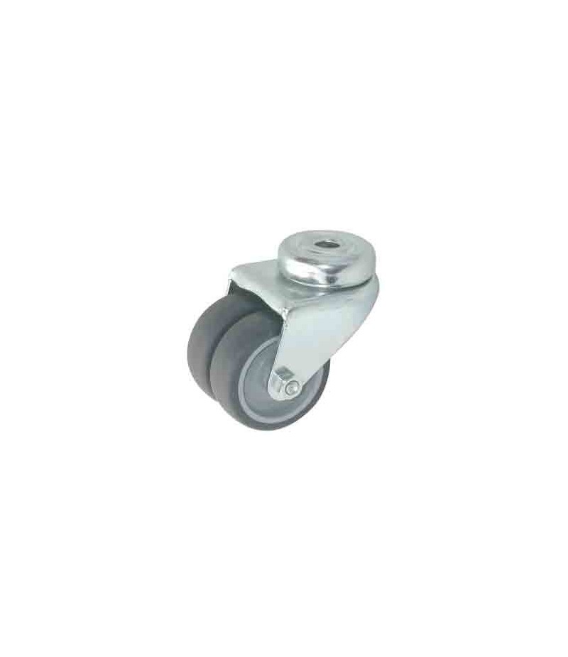 Chape à œil à 10 mm. Roue à bandage caoutchouc gris non tâchant. Charge dynamique : 700 Kg