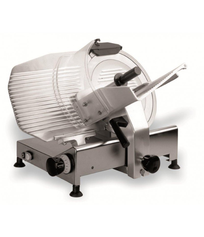 Bâti en aluminium anodisé et en acier inoxydable avec le traitement breveté pour le contact avec les aliments et pour la résistance à la corrosion - chariot amovible - adapté pour les traiteurs, la grande restauration, préconisé pour le jambon, la Coppa, ... Alimentation : 230/1/T. à lame : 350 mm. Coupe utile : 270 x 260 mm. Puissance : 4100 W. Dimensions : (l x p x H) : 730 x 560 x 560 mm. Poids net : 45 Kg.